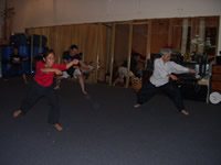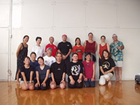 夕食をPJ、ROY、ウイッサ、フランコのサンノゼ太鼓の面々、そして彼らの友人であるカナダの太鼓グループ、日の出太鼓のお二人と一緒にカリフォルニア・ピッツァで。食後サクラメント太鼓団の道場へ。明日から始まるコンフェレンスの準備を手伝うためだ。サクラメント太鼓団は受け入れ中心団体の一つ。しかし準備は終わっていて、かわりにサクラメント太鼓団の太鼓ジャム・コンサートのための稽古が始まると言う。その稽古を見る。サクラメント太鼓団のリーダー、ティファニータマリブチは日本で修業した女性。そのスタイルは完全な日本スタイルだ。稽古が終わってティファニーは「ワークショップをしてもらう時は連絡はどうしたらいいのですか?」と話し掛けてくる。私は「どうぞその時はここにご連絡ください」と言って名刺を差し出す。 |