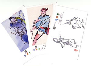 皆さんにお土産として持っていった万踊衆のポスト・カード (手拭も大変喜ばれました)