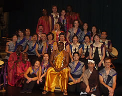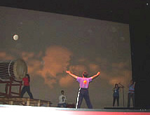 | 23日 | 午前、再度サーモン・ゴースト・ソングの音チェック。 昨日の稽古の結果、大太鼓の音にヴァイオリンの音が埋まって聞き取りにくかったからだ。 午後衣装を着けての通し稽古。 初めてガーナからのゲスト、オボーとそのグループのステージを見る。 シンプルだが力強い。 アンコール曲でポートランド太鼓、オボー、私3者のコラボレーションが実現。 中々エキサイティングだった。 そしてその夜8時からついに本番を迎えたのです。 出番前に私は当然のことながら多いに緊張しました。 しかし感激も大きなものでした。 2年前プレゼントしてもらったCDを聞いてサーモン・ゴースト・ソングという曲に胸を打たれ、たった一言「この曲に振り付けをして踊っても良いですか?」と作曲者のザックにお願いしたら「良いですよ、ありがとう」と快諾をもらった。 それが予想もしないこんな形になって実現するとは・・・。 二年間の時の流れ、人間のつながりの不思議ささえ感じました。 踊った結果が感動をもって受け止めてもらえたので責任を果たせた思いと、踊っている本人が感動を味わえているその喜び。 舞踊家としての冥利に尽きる・・・幸せな瞬間でした。 終演後皆と一緒にロビーにでました。 沢山の方から良かったと口々に言ってもらえました。 こうして初日は無事に終えることが出来ました。 |
