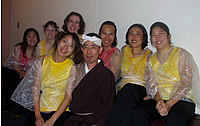 | 25日 | コンサート最終日。 午後2時からの開演。 始めてみると4ステージがあっという間に過ぎ去ってしまった感じがする。 今日は皆最後だという雰囲気。 それまでの日々は準備準備で忙しく走り回っている感じだったが、今日は皆とても落ち着いている。 開演15分前にステージに集合。 恒例のウォームアップと開演前の意思統一がなされる。 スタッフのミッシェルやテリーサのスピーチ、最後となるアンやザックのスピーチ。 感極まって皆涙を流している。 当然のごとく皆気持ちがぐっと盛り上がり、舞台は一番リラックスして良い流れだったと思う。 私も同じ、安心して一番納得のいく踊りを踊れたと思う。 ザックやアンからは「サーモン・ゴースト・ソングのレベルが一段あがりました。ありがとう」と感謝された。 終演後オールキャストで終演後太鼓の片づけが終わるとスタジオでキャスト・パーティということで出演者とその関係者でパーティ。 ポトラック・・・といってそれぞれが手作りの一品を持ち寄ってのパーティなのです。 多いに食べ、ジョークを言い、笑顔を交し合う。 思わぬ日本人の参加もあったり、ハワイのワークショップに参加していた青年に再会したり、本当に楽しい一時でした。 私は持っていった絵葉書を一人ずつに手渡して回る。 片言の英語で一生懸命説明しながら。 今回はまずはこの4ステージのコンサートでひとまずお別れ。 再び戻ってくる時はワークショップでまた皆に会える・・・別れを惜しみつつヴァレリーの家へ帰宅。 明日の出発に向けて荷物の整理。 |