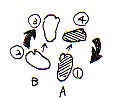 Aに右足ついて腰で拍子をとりつつBの左足浮かせ踵の方をヤヤ入れてAの足の横に持ってくる。