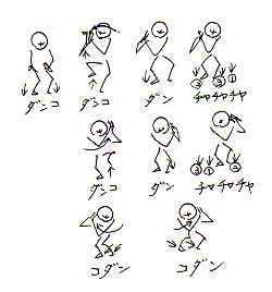 両足踏み、右足上げ、右足つき、左右左と踏む