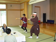流れが少しずつ体に入ってきた頃を見計らって安原さんがカナダから持ってきた浴衣を着ての訓練、それにまた慣れた頃から笠をかぶって・・・と徐々に総合的な訓練に入っていきました。