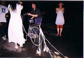缶カラを引きずって二人はこの自転車に乗り、夜の芸術村内を