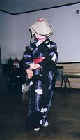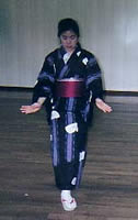 ミッシェルは一生懸命考えて創ってきました。登場は普通にすり足で登場。最初の構えに入ります。それが音頭の最初の一振りなのですが本来踊り始めるタイミングよりずっと前にそのポーズを極め、踊りのタイミングが来るまでそのポーズのままキープ。意表を突く入りでした。脱帽。