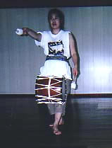 少し見通しの持てて来た頃から太鼓を叩き、尚且つ歌いながら踊ることへ挑戦を始めました。それまでは歌の部分は私が稽古をつけながら歌っていたのです。歌は歌でミッシェルも稽古はしていたのですがいっそのこと全てを同時にやってみようと計画しました。
