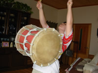 始めて叩く横打ちのスタイルに最初は慣れないようだったが、それでも太鼓はお手のもの。