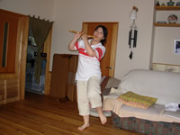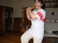 踊りながら笛を吹くとますます安定しない。